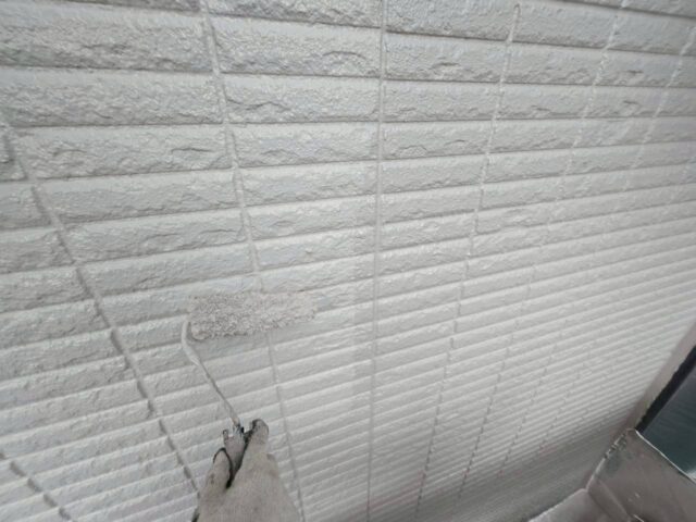 ↑軒天井 2回目上塗り(トップコート)塗布完了