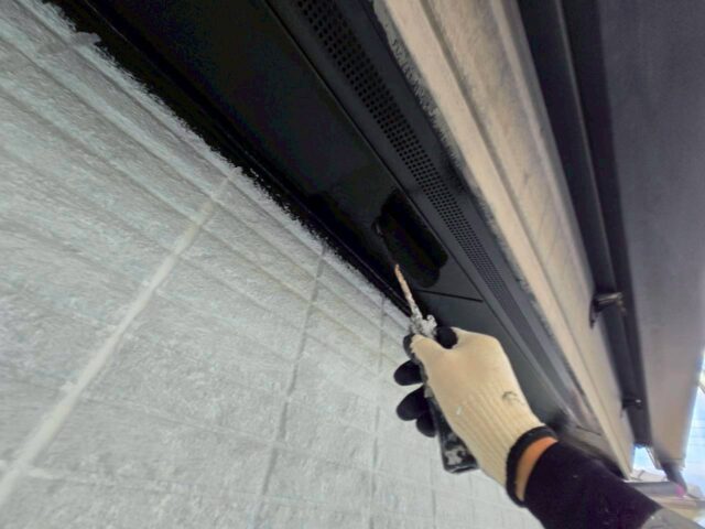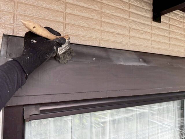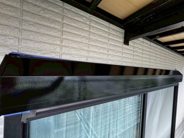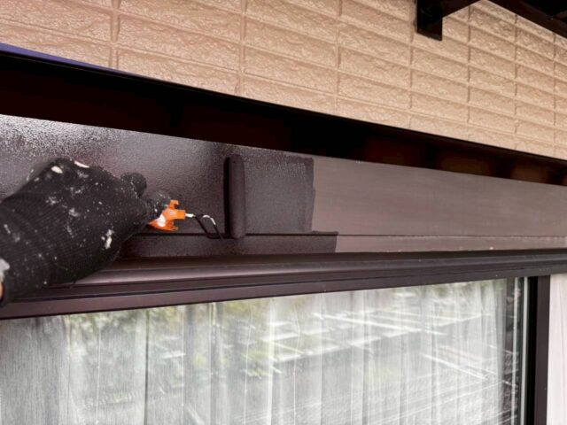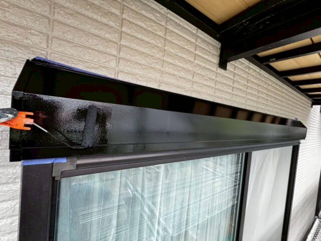 ↑シャッターボックス 2回目上塗り(トップコート)塗布作業中
