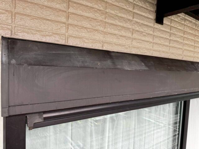 ↑シャッターボックス 錆止め止め(鉄部下塗り)後のケレン作業中