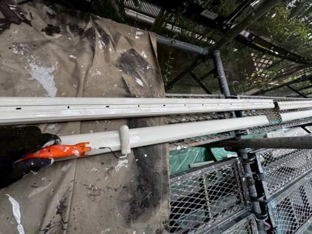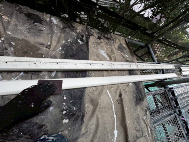 ↑庇(霧除け) プライマー塗布作業中 プライマーとは?シーリングの密着を良くするための接着剤のような役割の塗料になります💁♂️︎🤍