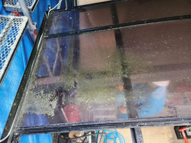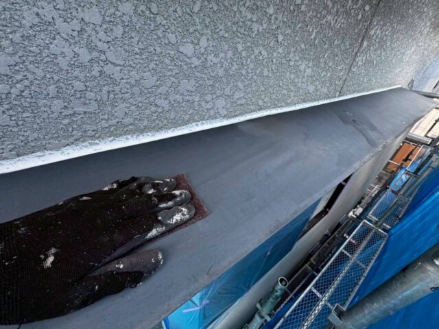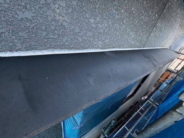 ↑庇(霧除け) 目粗し作業中 目粗しとは?表面に細かい傷をつけることで塗料の密着をよくする大切な作業になります🥺高圧洗浄で落としきれなかったこびりついた汚れやサビなどを取り除く作業でもあります😆🤍