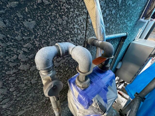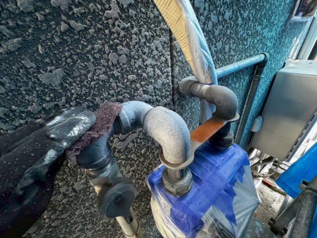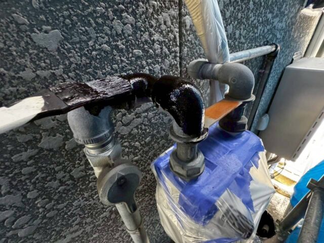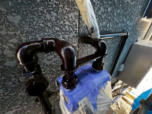 ↑ガス管 錆止め(鉄部下塗り)塗布完了