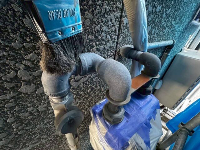 ↑ガス管 錆止め(鉄部下塗り)塗布作業中