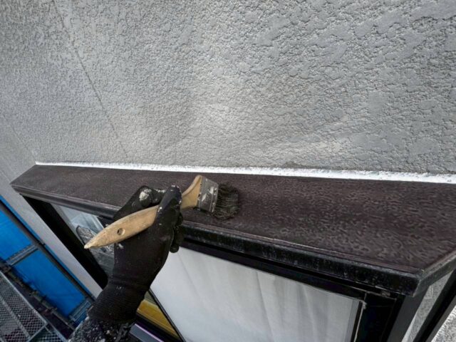 ↑出窓天端 錆止め(鉄部下塗り)塗布作業中