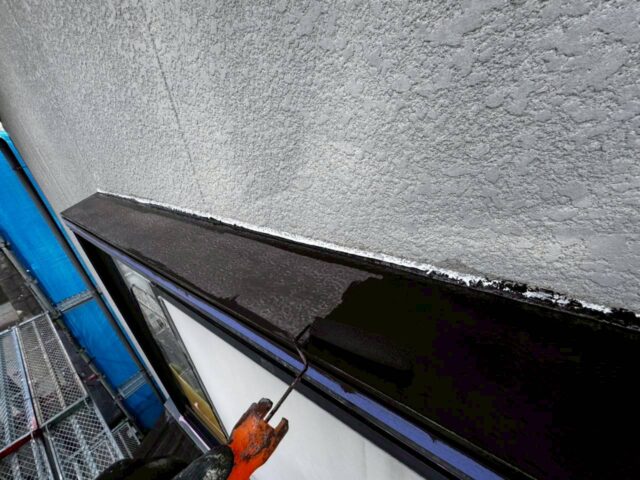 ↑出窓天端 錆止め(鉄部下塗り)塗布完了