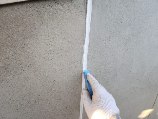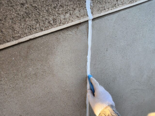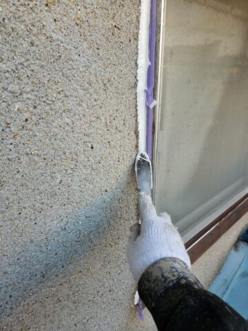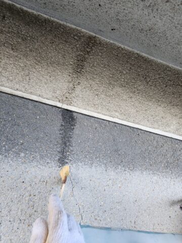 ↑目地 割れ プライマー塗布作業中 プライマーとは?シーリング材の密着を良くするための接着剤のような役割の塗料になります💁︎🤍