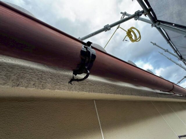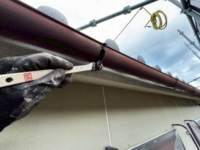 ↑雨どい留め具金物 錆止め(鉄部下塗り)塗布作業中 価格競争が進む中 こういった付帯箇所に下塗り材を塗布する業者も少なくなりましたが 耐久性を考えると間違いなく必要な工程になります😆