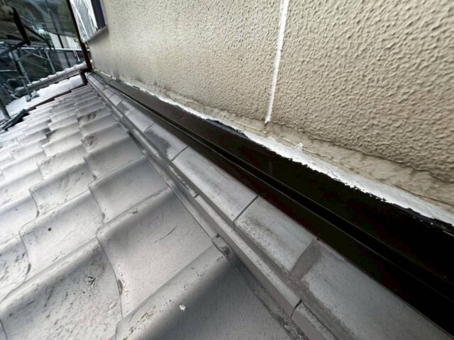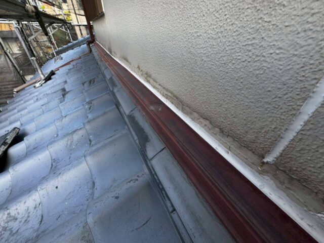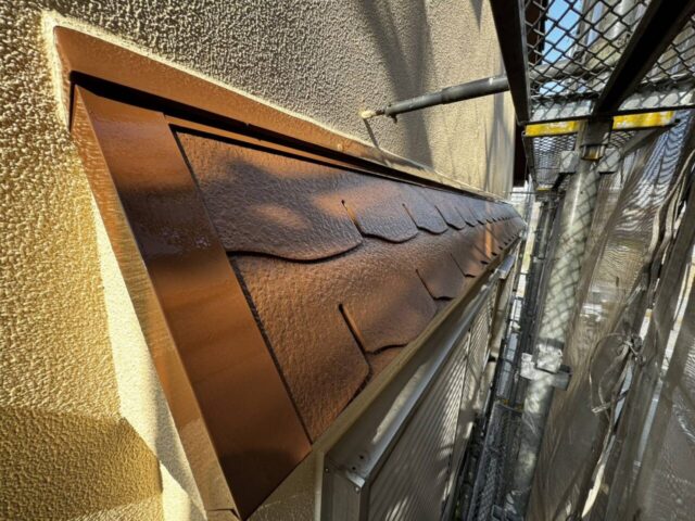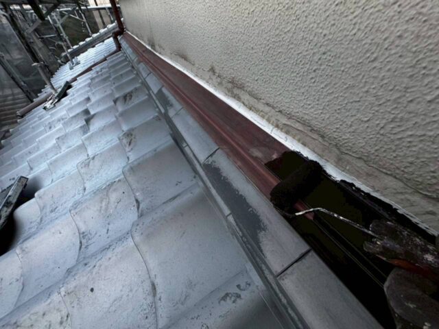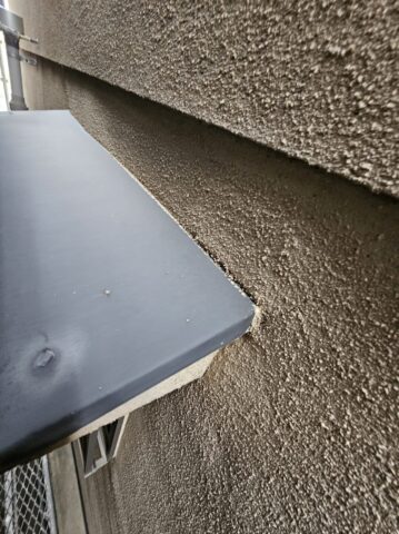 ↑雨押さえ板金 錆止め(鉄部下塗り)塗布完了