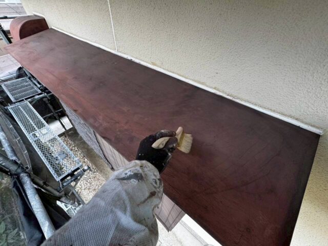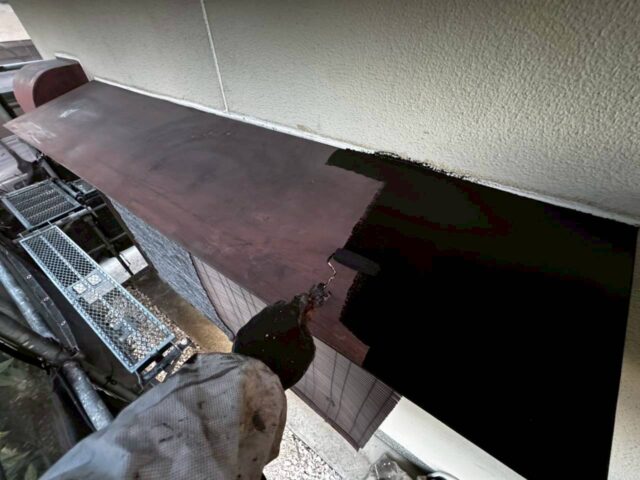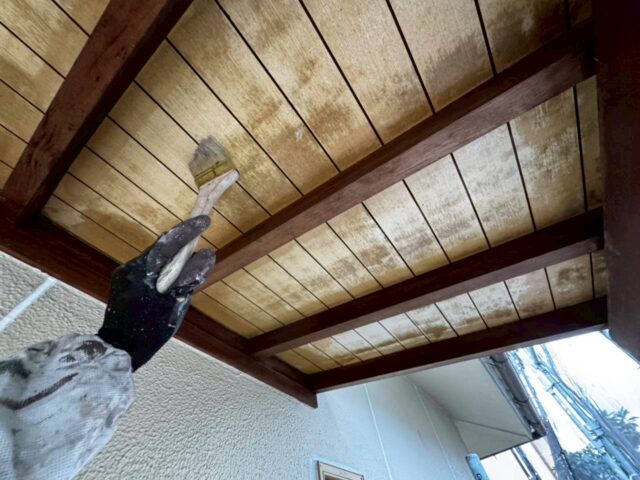 ↑ひさし 2回目上塗り(トップコート)塗布作業中