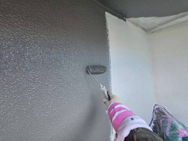 ↑外壁 上塗り(トップコート)塗布作業中 トップコートとは?紫外線や雨から下地を守るための保護仕上げ材になります💁皆様が気にされる塗料のグレードは こちらのトップコートのグレードになります💁︎🤍