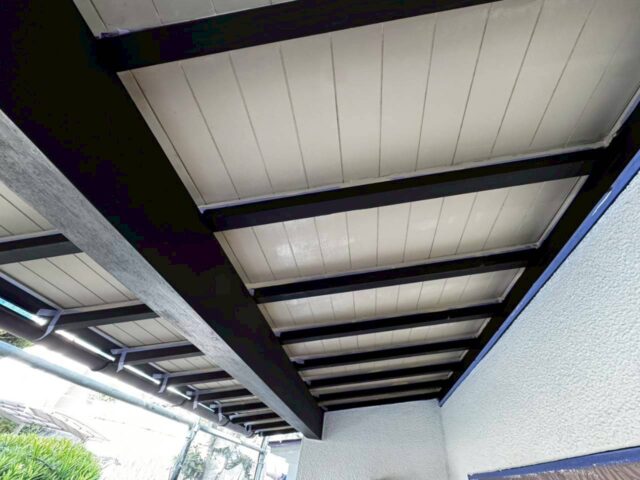 ↑ひさし 錆止め(鉄部下塗り)塗布完了