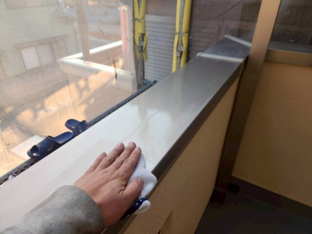 防水工事、足場の解体、足場解体後の清掃 タッチアップを行いました👷🏻♀️