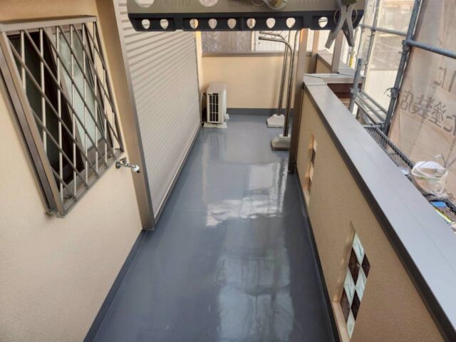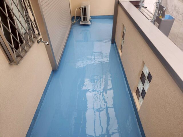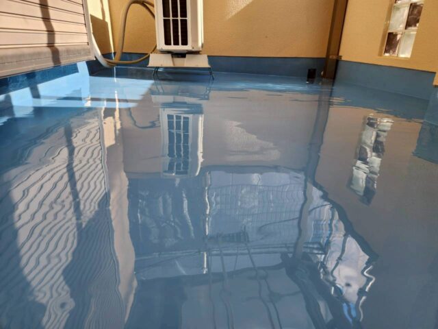 ↑バルコニー土間(床) ウレタン防水層二層目施工完了 プルンプルン🍮🎶