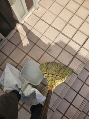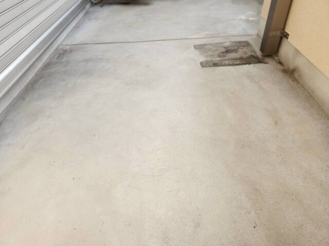 ↑バルコニー土間(床)ケレン ブツ取り作業中 表面にこびりついている汚れや突起物を取り除く作業になります\(^o^)/︎🤍