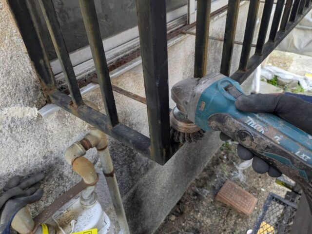 ↑ひさし 錆止め(鉄部下塗り)後のケレン作業中 表面を平滑に仕上げるためのひと手間になります🤗︎🤍