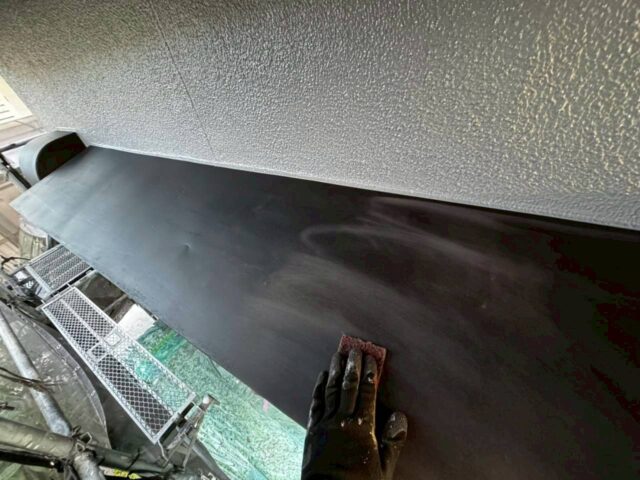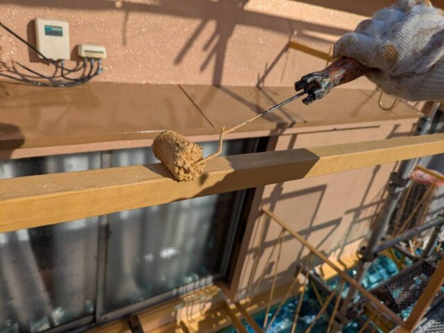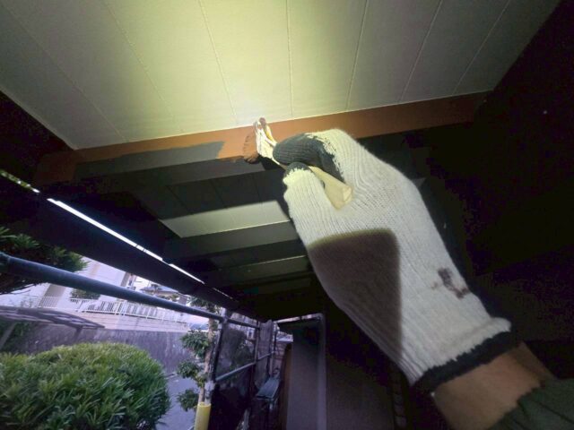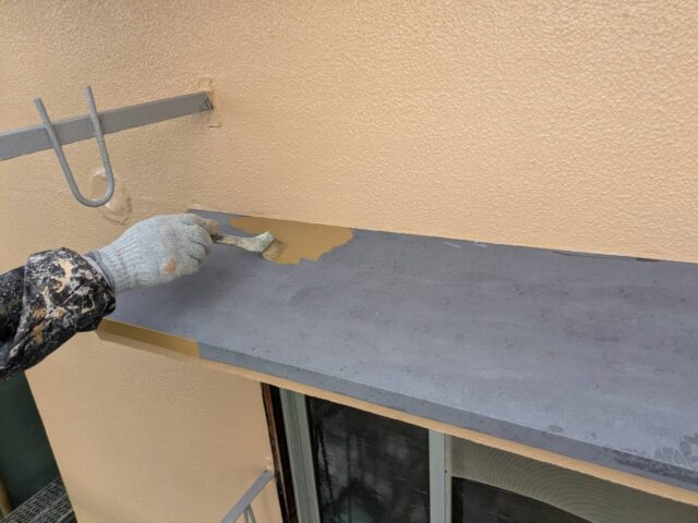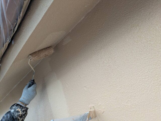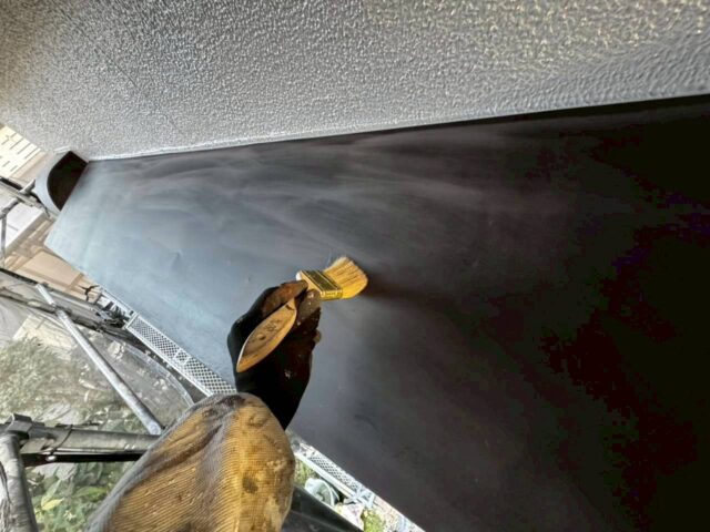 ↑ひさし 1回目上塗り(トップコート)塗布作業中