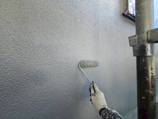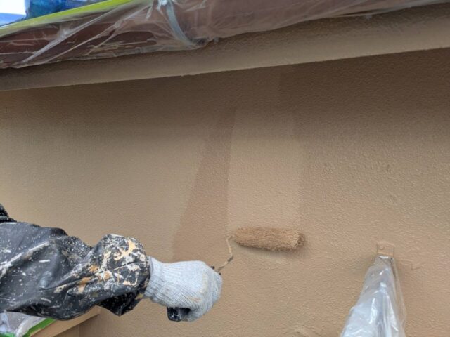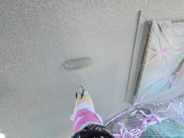 ↑外壁 2回目下塗り(マスチック工法)塗布作業中