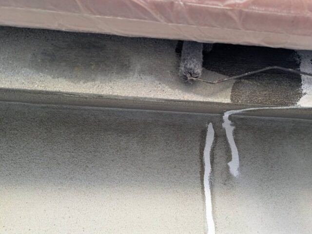 ↑軒どい 1回目上塗り(トップコート)塗布作業中 外壁部分と付帯部分の塗料(材料)が同じと思われがちなのですが ペンターテイナーでは 外壁は水性塗料・付帯箇所は溶剤(油性)塗料を使用する事が多いです♥️ペンターテイナーでは こういった付帯箇所へ使用する塗料のグレードにもこだわっております✌️❤