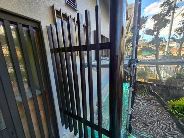 ↑出窓 錆止め(鉄部下塗り)塗布作業中