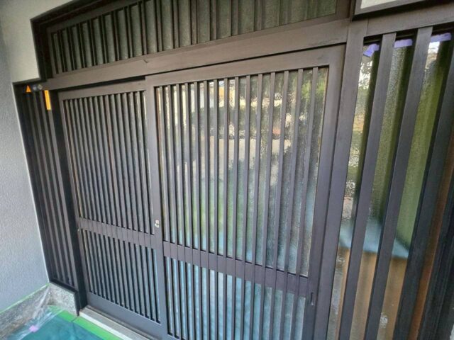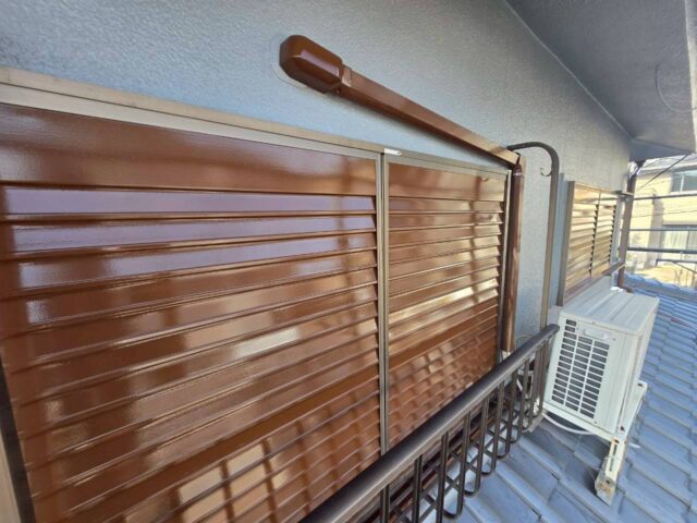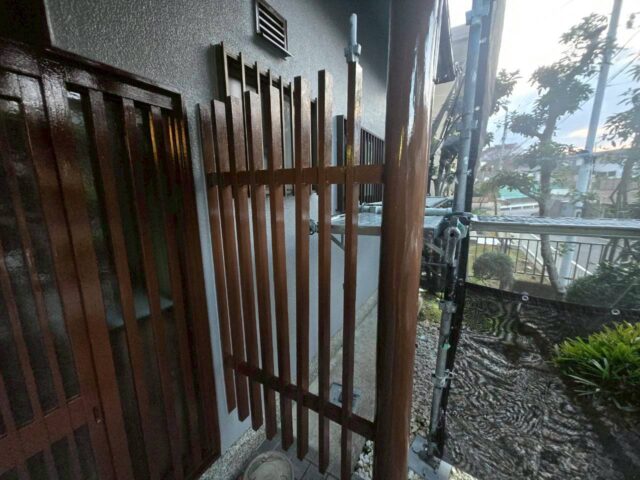 ↑玄関扉木部格子、木製目隠しルーバー 塗装完了です🫡🫡