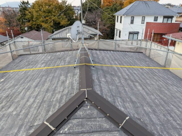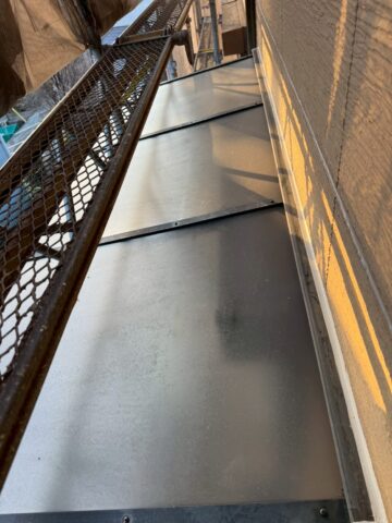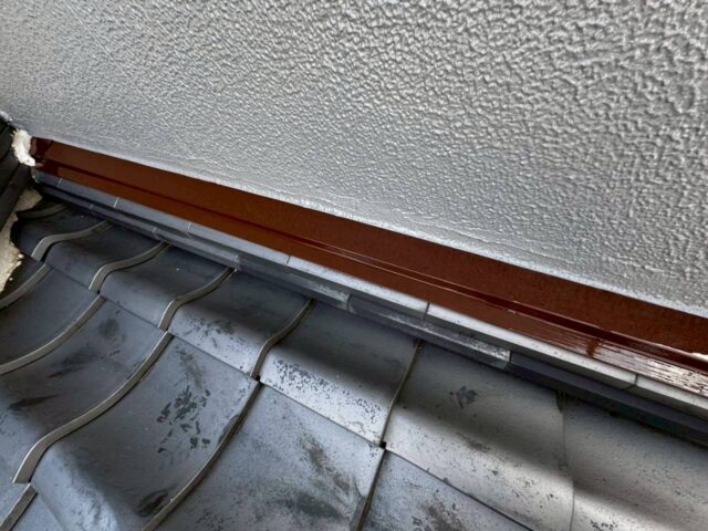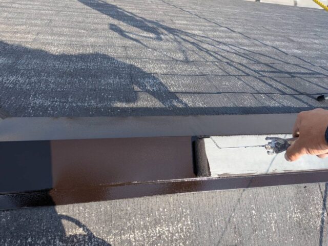 ↑雨押え板金 1回目上塗り(トップコート)塗布完了