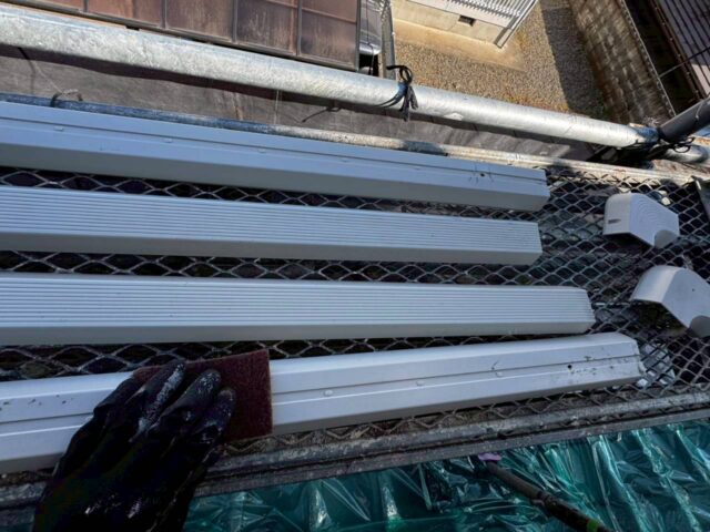 ↑軒どい留め具金物 目粗し作業中 目粗しとは?表面に細かい傷をつけることで塗料の密着をよくする大切な作業になります🥺高圧洗浄で落としきれなかったこびりついた汚れやサビなどを取り除く作業でもあります😆🤍