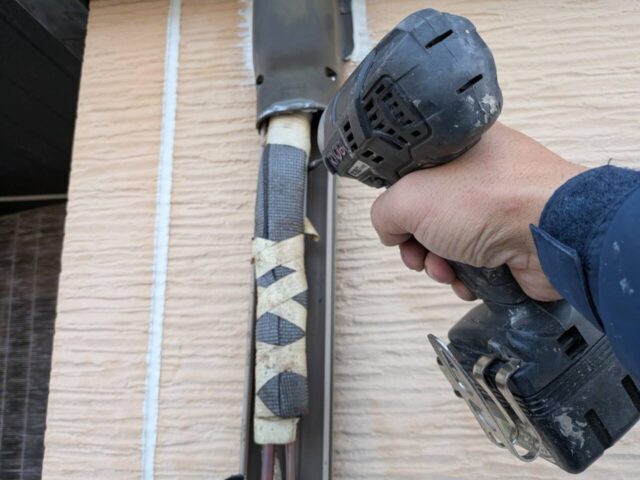 ↑外壁に固定されているエアコンホースも取り外していきます🙋♂️