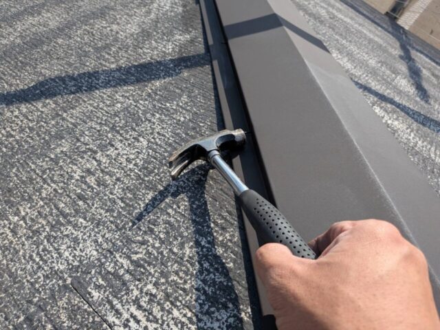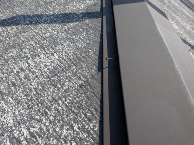↑屋根板金箇所を留めている釘の浮き 叩いて戻してあげます☝️こちらをそのまましていると 強い風がふいた際、飛んでいく可能性があります🥲︎