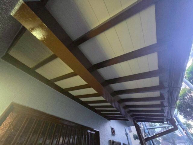 ↑ひさし 1回目上塗り(トップコート)塗布完了