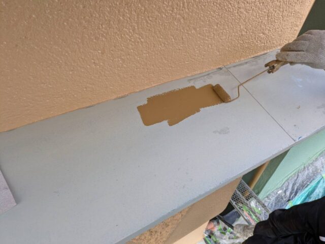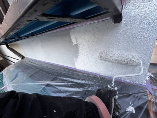 ↑ひさし 1回目上塗り(トップコート)塗布作業中