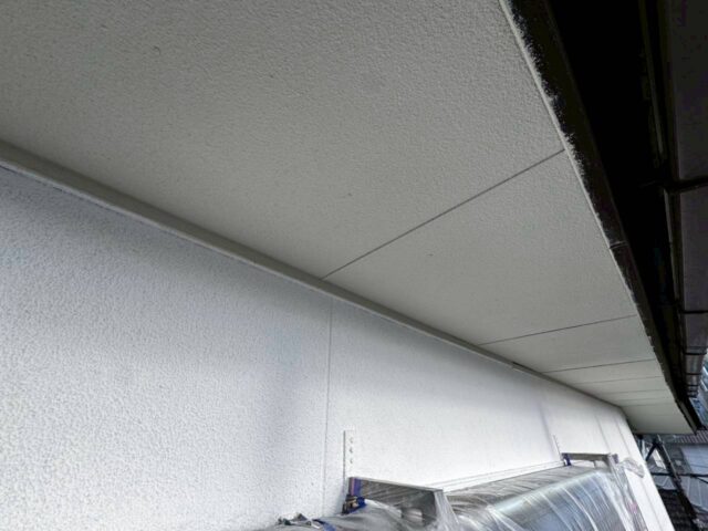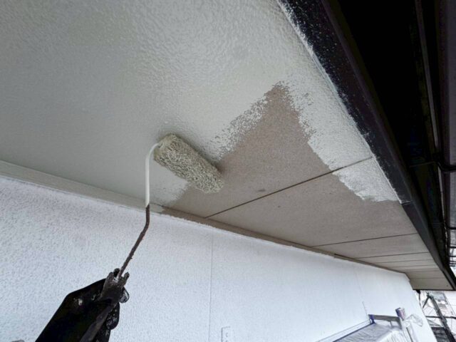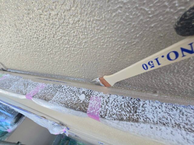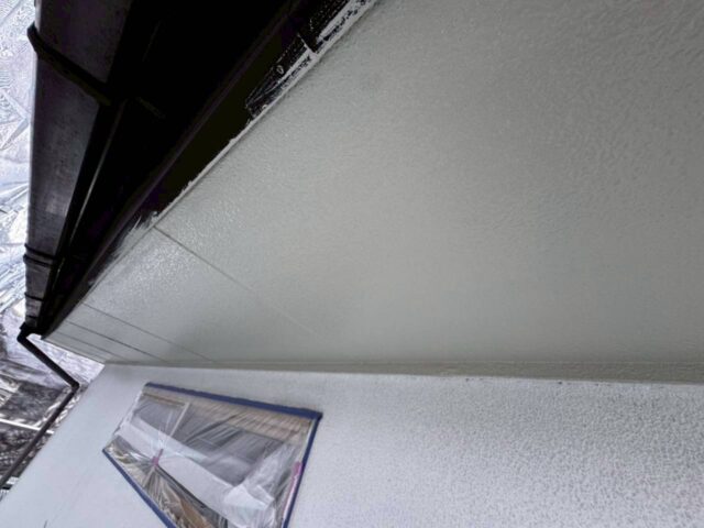 ↑軒天井 1回目上塗り(トップコート)塗布完了