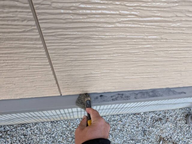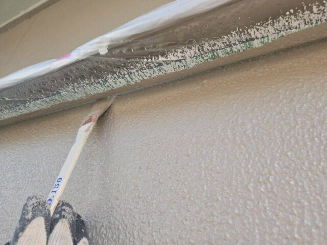 ↑外壁チリ取り作業中 チリ取り作業とは?細かくてローラーでは塗装できない箇所を刷毛などで塗装する作業になります🫡🫡