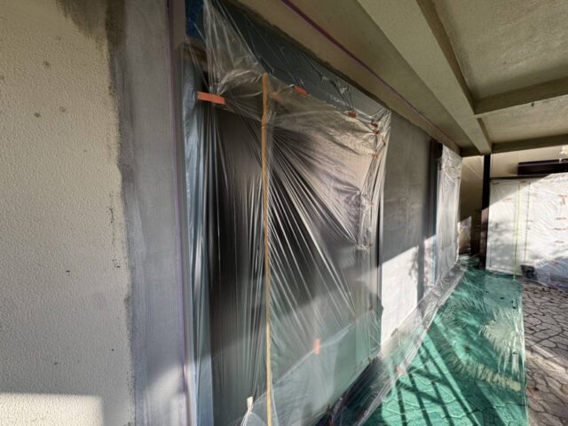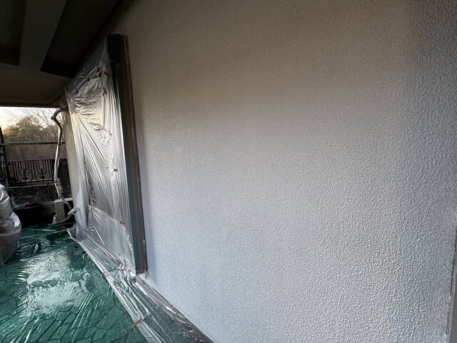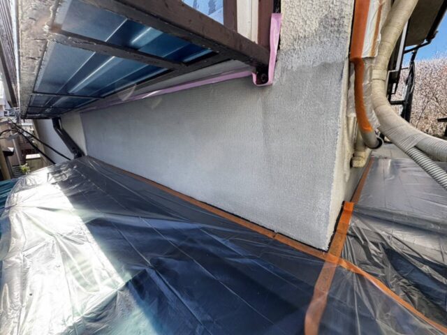 ↑外壁 2回目下塗り(マスチック工法)塗布完了