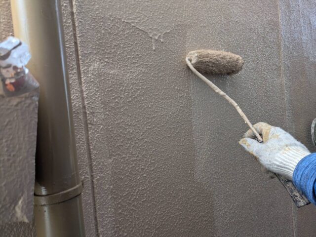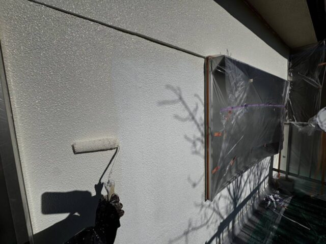 ↑外壁 上塗り(トップコート)塗布作業中