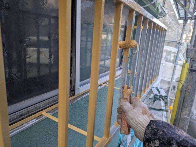↑格子 2日目上塗り(トップコート)塗布作業中
