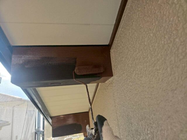 ↑ひさし 2回目上塗り(トップコート)塗布作業中