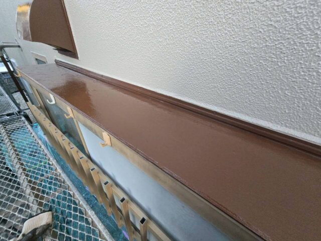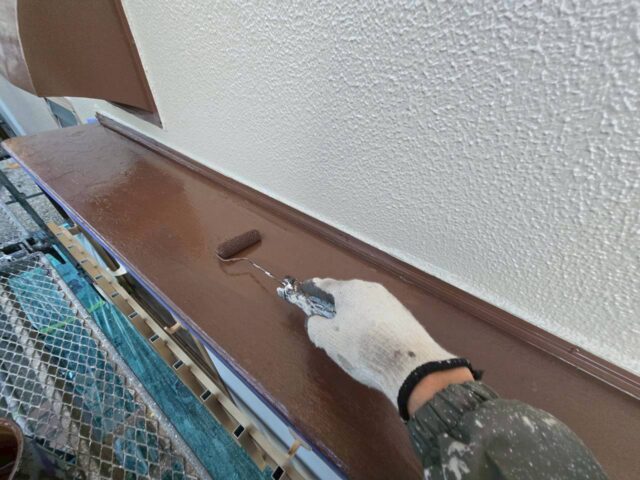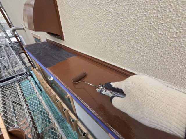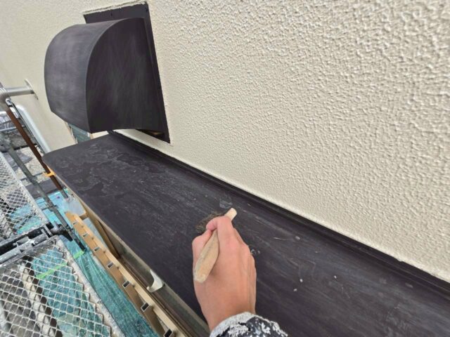 ↑ひさし 1回目上塗り(トップコート)塗布作業中