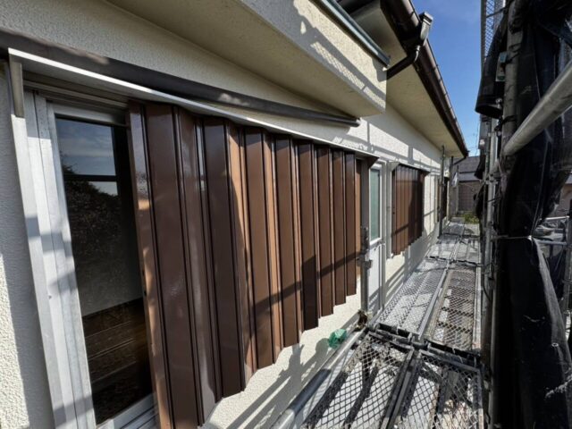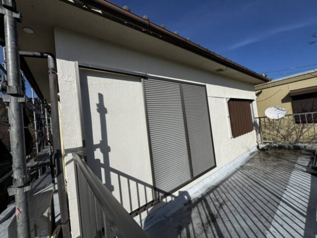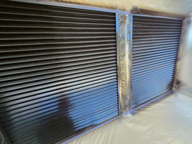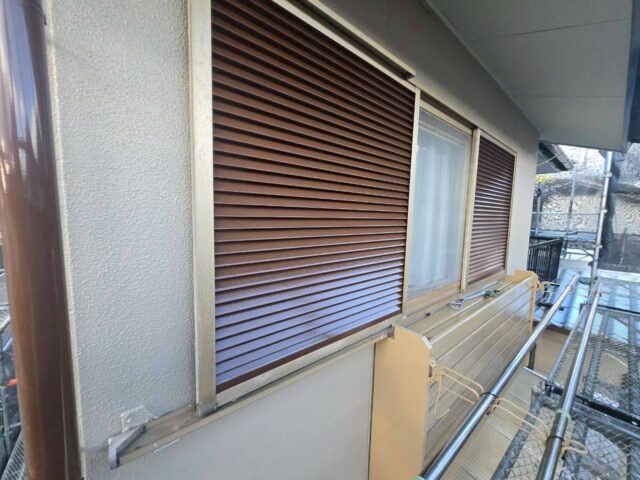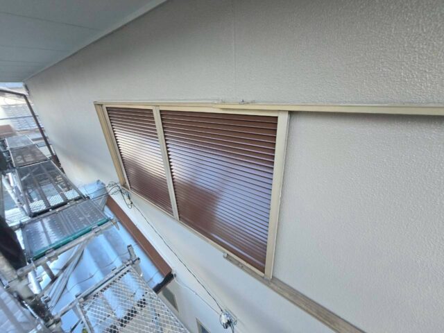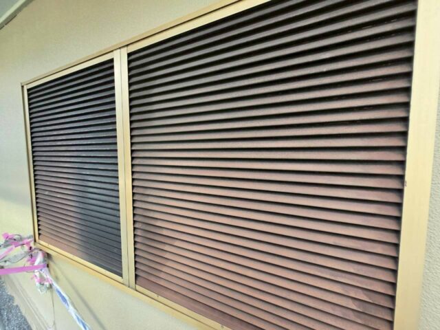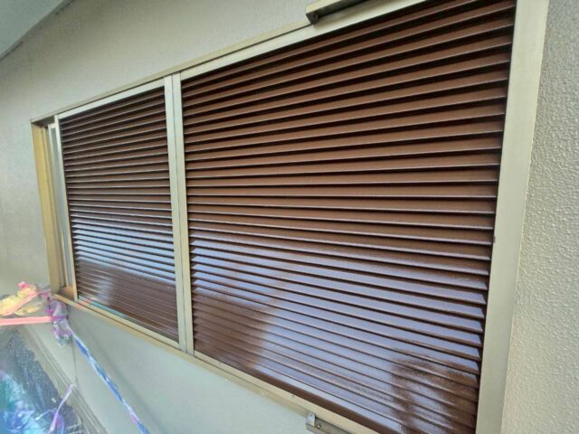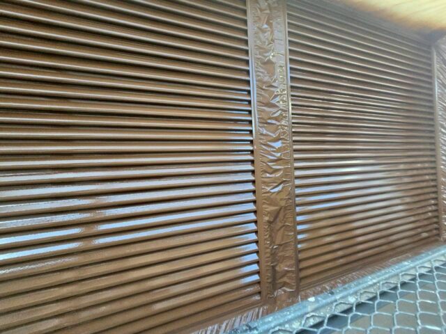 ↑雨戸 2回目上塗り(トップコート)吹き付け完了