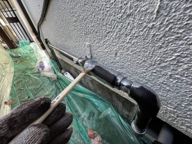 ↑配管 サビ止め(鉄部下塗り)塗布完了