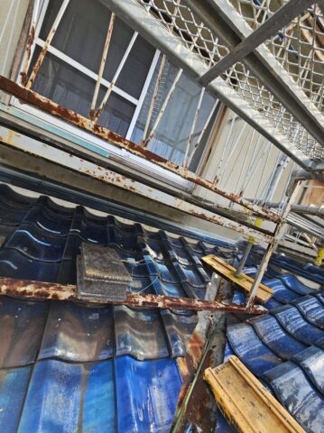 ↑ひさし ケレン後の清掃中