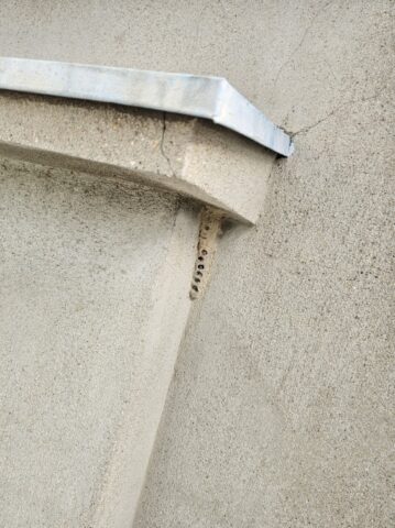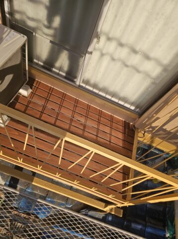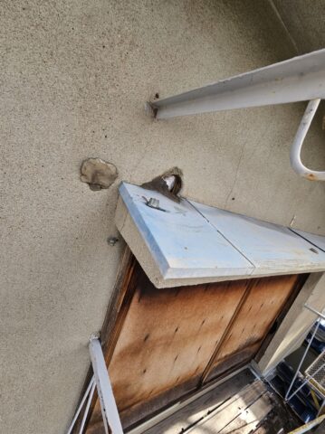 ↑ひさし サビ止め(鉄部下塗り)後のケレン作業中 このケレン作業は 表面を平滑に仕上げるためのひと手間になります🫶