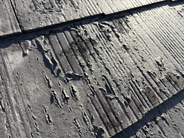 ↑こちらの屋根は【レサス】と呼ばれる屋根材になります😊ノンアス建材転換期の製品で通常の屋根材より脆く縦割れしやすいのが特徴です🏠こちらの屋根材の場合は 塗装ではなく、屋根工事【カバー(重ね葺き)または葺き替え】をおすすめしております🙇♀️︎🤍