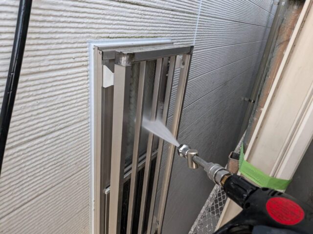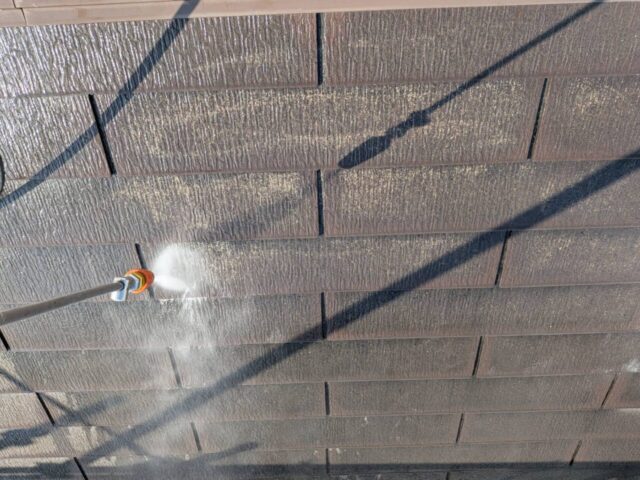 塗装する箇所に こびりついた藻やコケや泥などの汚れを水圧で洗い流す作業になります💁