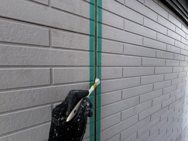 ↑外壁目地プライマー塗布作業中 プライマーとは❓シーリング材の密着を良くするための接着剤のような役割の塗料になります💁︎🤍