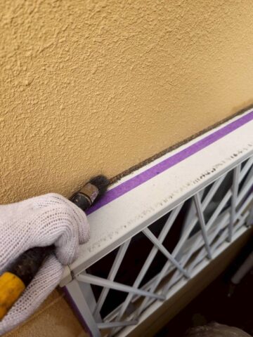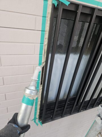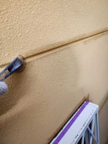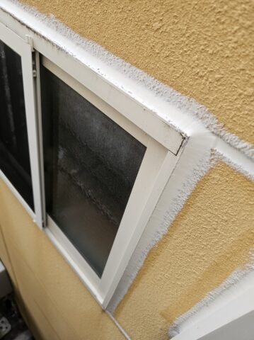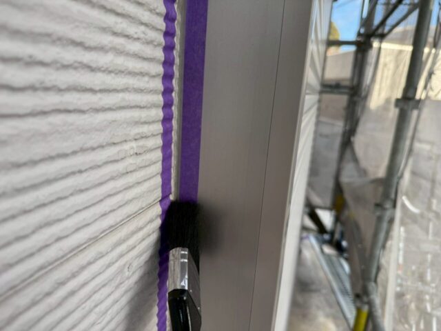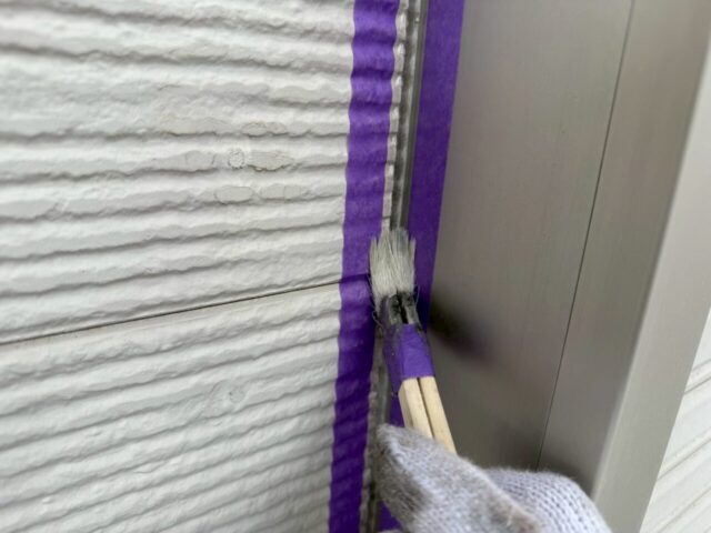 ↑サッシ廻り プライマー塗布作業中 プライマーとは❓シーリング材の密着を良くするための接着剤のような役割の塗料になります🤗