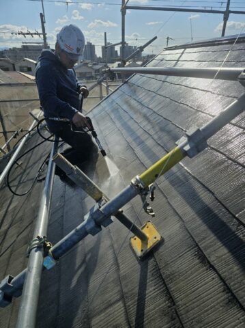 足場の組み立て、シーリング工事、屋根工事、高圧洗浄を行いました👷🏻♀️