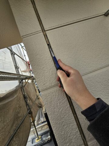 ↑外壁 目地 ボンドブレーカー貼り付け完了