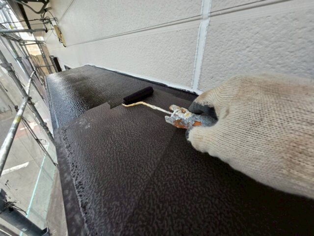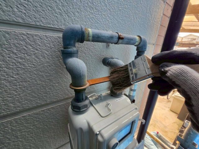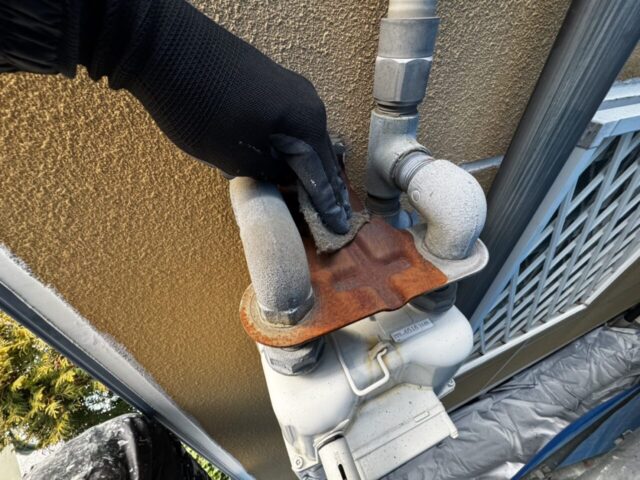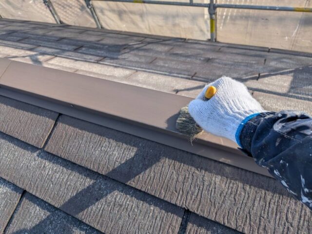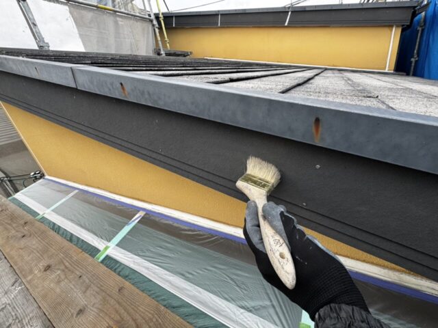 ↓↓↓以下 同様に棟板金、土台水切りの錆止め(鉄部下塗り)作業を進めていきます