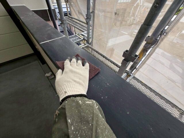 手で触って「ザラザラすぎないか」「浮きが残ってないか」を確認👀✨塗料が しっかり密着する状態に整えます🙆♀️