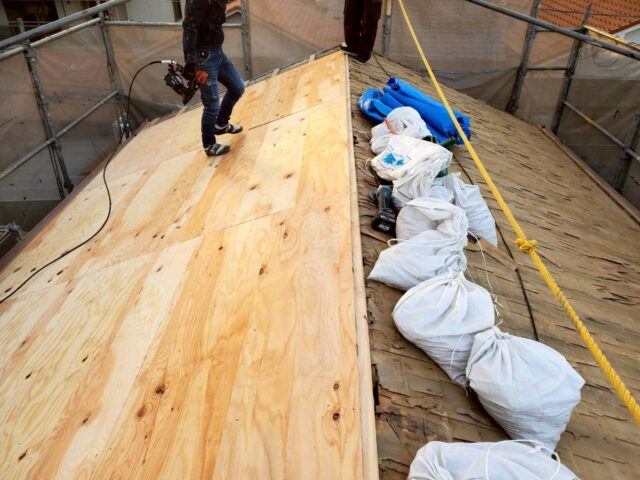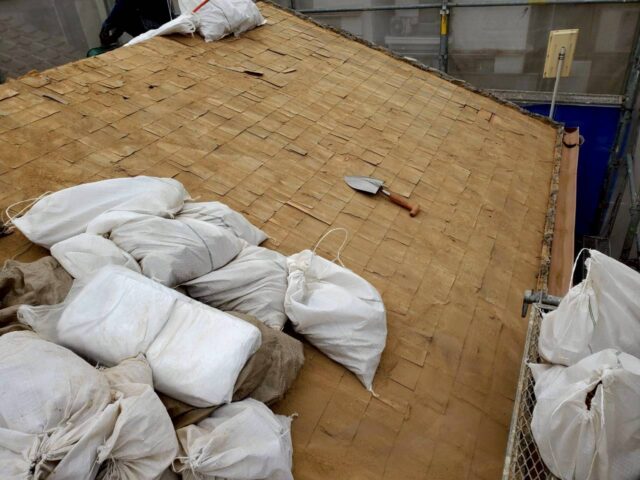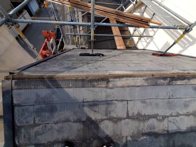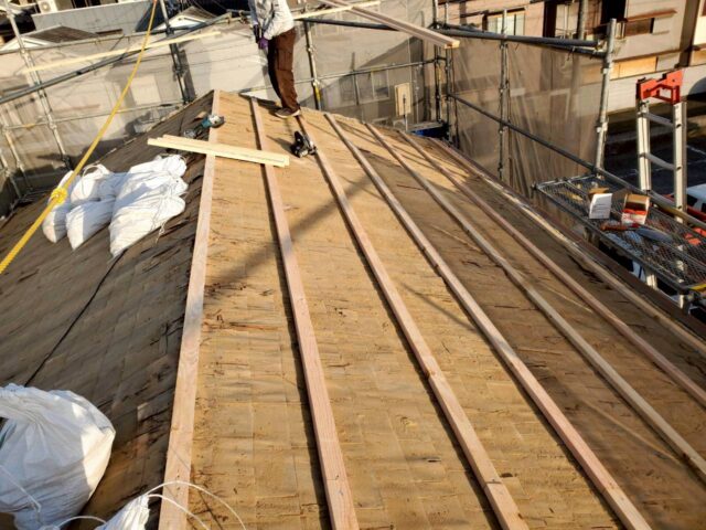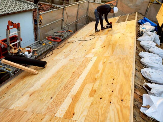 劣化した下地の上から 新しい野地板(構造用合板)を施工します✨この工程で